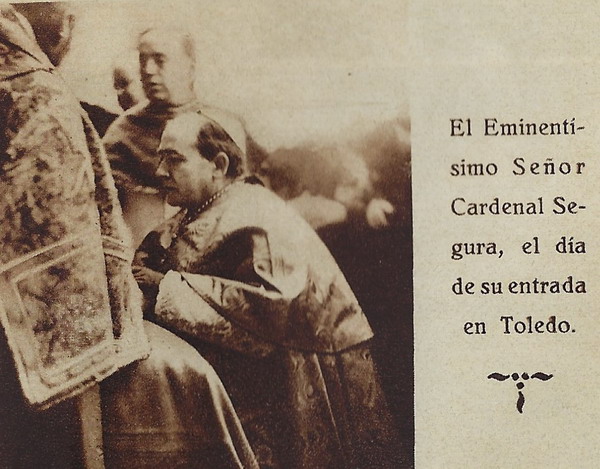 EL CARDENAL SEGURA por Jesús Requejo San RománBueno, decía ayer, que el ejemplar que conservo solo tiene dos fotos de todas estas que presento. La primera y la última. Así que cuando un buen amigo, de los que se crea en esta red de devoción a los mártires, me ha hecho llegar otro ejemplar (de otra edición) me ha sorprendido ver todas estas fotos que hoy recojo. En memoria de uno de los Cardenales más importantes que se ha sentado en la Sede de San Ildefonso de Toledo. Devoto y gran difusor del culto al Corazón de Jesús. Y por lo tanto de CRISTO REY. Estas todas en Toledo.