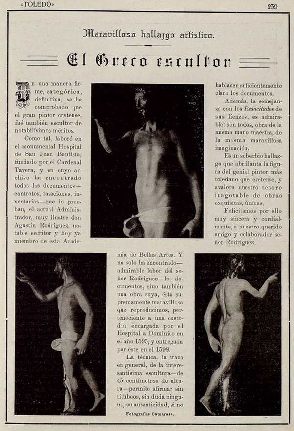 En la publicación mensual Toledo, revista de arte, de diciembre de 1921, se informaba del descubrimiento de la talla por parte de don Agustín Rodríguez
