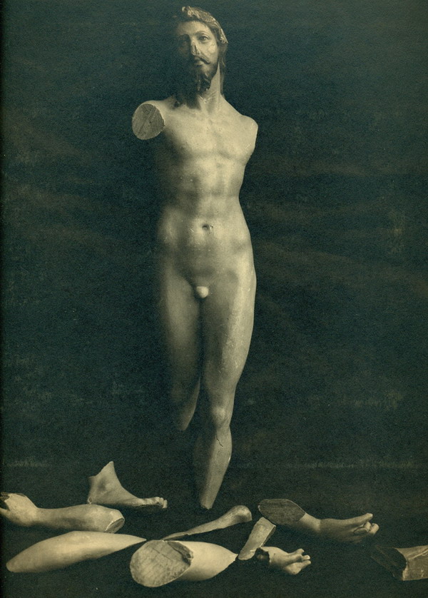 Cuando nos íbamos a marchar de allí nos llamó la atención un montoncillo de trocitos de figura rota que había en un rinconcito limpio que hacía uno de los costados de la cajonera con la pared; la recogimos cuidadosamente y Cecilio las fue uniendo como pudo hasta darse cuenta de que eran los trozos de la escultura de Cristo resucitado, la única hecha por el Greco, de muy pequeño tamaño, de la que Cecilio tenía noticia.