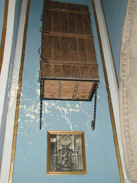 [Cinco meses antes del inicio de la Guerra Civil, la Virgen de la Esperanza fue ocultada en un cajón y puesta a salvo ante la amenaza de destrucción. El cajón se puede ver en el Museo de la Macarena.]