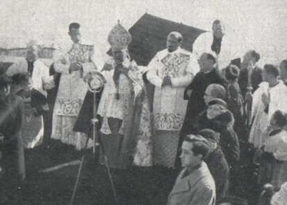 Cerca de las doce, llegó a la cumbre el señor obispo de la diócesis, doctor Irurita, acompañado de su familiar y del maestro de ceremonias de la catedral, reverendo doctor Salvado.