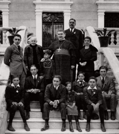 Bajo estas líneas san Manuel González García, a su izquierda don Fernando Soto Aguilar y su esposa, doña María del Carmen Domecq, la madre de ella y sus hijos (José, Fernando, Ignacio, Juan Pedro, Luis, Manuel, Carmen y María Luisa).