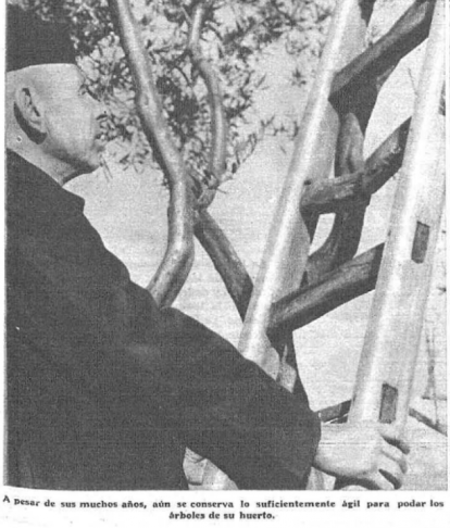 - Andar, andar, es lo que conserva ágil y fuerte. Cuando llegué a Monfarracinos, hace cuarenta años, encontré la iglesia en ruinas, y me propuse no descansar hasta que consiguiera su restauración. Muchos días hice tres viajes a Zamora, que está a seis kilómetros, para hablar con las autoridades. Y ahora que soy viejo, muchas tardes me voy hasta allí dándome un paseo, sin advertir cansancio alguno.