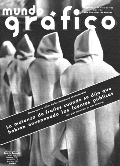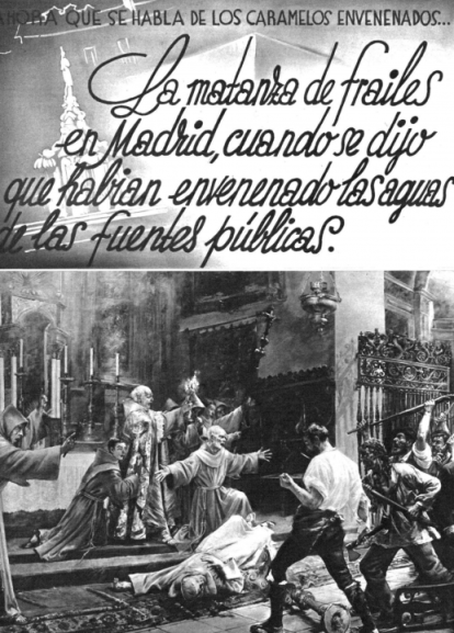 Ahora que se habla de los caramelos envenenados... La matanza de los frailes cuando se dijo que habían envenenado las fuentes públicas. Un gran reportaje. En el interior hay cambio de foto pero con los mismos titulares.