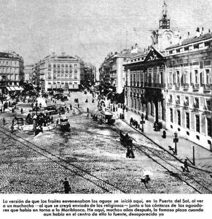 El cólera en Madrid. Llega desde las campiñas andaluzas, bajo el sol ardiente del verano. Hay ya unos cuantos casos en la primera quincena de julio; mas las autoridades, por no alarmar al pueblo, se resisten a declarar oficialmente la epidemia. En los primeros días del mes, precisamente, ha descargado sobre Madrid una considerable tormenta, que encharca las calles durante varias jornadas. La fuente de la Cibeles queda convertida en isla, y los aguadores tienen que formar con tablones y cubas unos pequeños puentes para llegar a los caños del Oso y de la Sirena. El agua que en las desigualdades del terreno queda estancada durante varios días, bajo el rigor del verano, favorece, sin duda, la propagación de la epidemia.