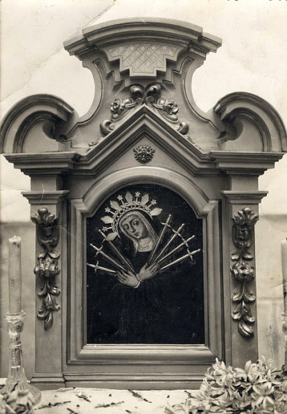 No podía escapar a tanto odio la venerada Imagen conocida por el nombre de la Virgen de los Alfileritos expulsada sacrílegamente de su hornacina, si bien hay que reconocerlo con cierto respeto y veneración, ya que lejos de destruirla, como con tantas otras Imágenes hicieron, la entregaron en depósito para que la guardara en su casa, el que estas líneas escribe.