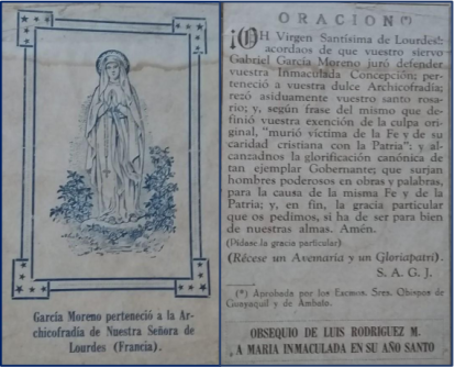 Este gran presidente del Ecuador, el primero que consagró su nación al Deífico Corazón de Jesús, asesinado en odio a la Religión y a la Patria el 6 de agosto de 1875, era devotísimo de Nuestra Señora, cuya medalla y escapulario siempre llevaba consigo. A fin de pertenecer más particularmente a la que llamaba su Madre del Cielo, quiso entrar en la Congregación Mariana, que en Quito dirigían los jesuitas y pidió ser alistado en el grupo de los obreros, asistiendo regularmente a las juntas, a las reuniones generales y demás ejercicios, feliz y orgulloso de ostentar la medalla de María en medio de sus queridos jornaleros, orgulloso a su vez de tener en su seno al presidente de la República.