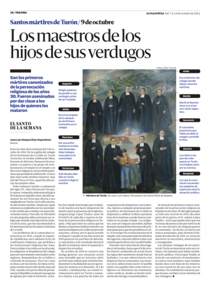 Juan Luis Vázquez escribió el jueves esta página de los mártires de Turón para Alfa & Omega (página 18): 1230_07-10-2021.pdf (alfayomega.es)