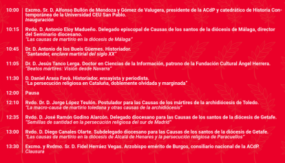 En la primera sesión se recordó que durante la persecución religiosa se asesinó al menos a 80 propagandistas. «El motivo de este porcentaje tan elevado –detallaba el profesor Federico Jiménez, consejero nacional de la ACdP– es que cuando llegó el momento de la persecución religiosa, los propagandistas estaban en primera línea». Actualmente, son cinco los mártires propagandistas que han sido beatificados: Luis Campos Górriz, Luis Belda Soriano, Ricardo Pla Espí, Alfonso Sebastiá Viñals y Miguel Vilatimó Costa.