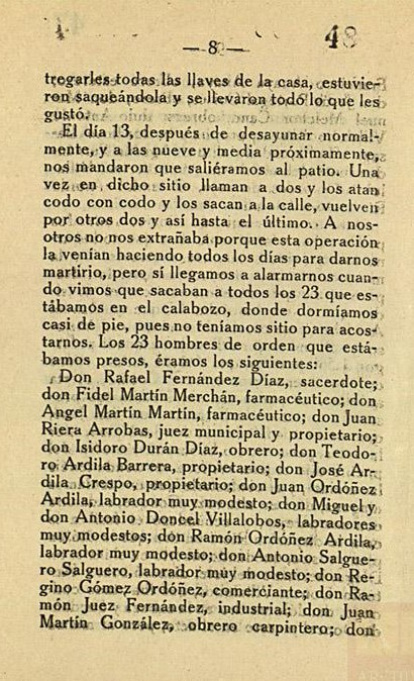 PD1. Me piden una aclaración, que me parece justa hacer ya que a nuestro protagonista no le fusilan por motivos religiosos. Con este testimonio se trata de demostrar [sobre lo que hemos hablado muchas veces en el blog] la importancia de los testimonios, algunos de los cuales incluso fue fusilado... como es el caso. Hay testimonios de fusilados / no muertos sin demostración de fe o incluso manifestando que no creen pero testifican sobre lo vivido [no es el caso de la teresiana que fue fusilada junto a la beata Mercedes Prat i Prat, cuyo testimonio hasta que expiró la mártir es fundamental]. También el tema tan traído de que fallaban mucho porque no eran militares de carrera y, por lo tanto tenían que rematarlos con el tiro de gracia.