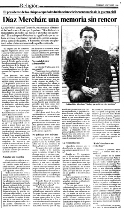 Bueno, muy breve que no quiero cansarlo. Entiendo que al estar entrecomillado son palabras textuales. Yo de lo que Vd. cuenta no sé nada. Aunque conservo también entre mis papeles este recorte de cuando monseñor Gabino fue a mi parroquia de Barcelona. Y este fue el titular de La Vanguardia del domingo 5 de octubre de 1986