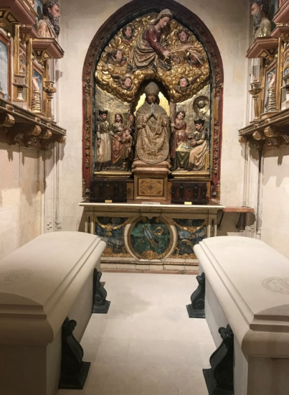 Los pueden venerar en la Capilla del Obispo o de San Julián. A comienzos del siglo XVII, el obispo Pacheco solicitó al cabildo la utilización de esta antigua capilla como capilla privada para decir Misa. El cabildo se lo concedió, por lo que pasó a llamarse así. Un tiempo atrás, el cabildo había decidido hacer una capilla dedicada al patrón de la ciudad. Ésta fue la capilla elegida para tal fin. El retablo central muestra en bajorrelieve escenas de la vida del santo. A san Julián se le presenta haciendo cestillos, que luego vendía para –con lo que sacaba- dárselo a los pobres. Además, admiren la magnífica colección de relicarios del siglo XVII -con reliquias auténticas-, situados en las paredes laterales.