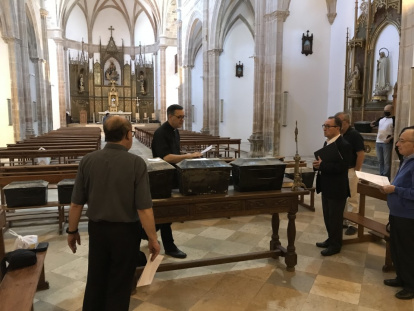 «La Provincia Dominicana de Hispania trasladó este jueves los restos de los mártires dominicos enterrados en la iglesia del convento de Nuestra Señora de la Asunción de Calatrava de Almagro hasta el convento de Santo Tomás de Aquino de Sevilla, donde se ubicarán en un altar para su veneración, tras ser beatificados el próximo 18 de junio.