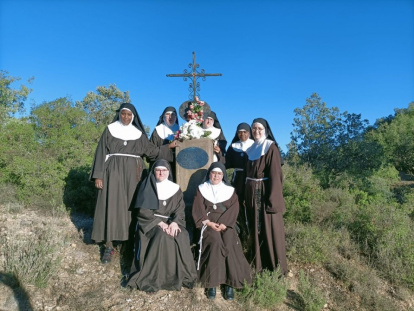 [En la víspera de la apertura de la Causa de beatificación de estos 252 siervos de Dios, las clarisas de Monzón se han desplazado a Peralta de la Sal, a dejar unas flores y una oración en el lugar donde tres de sus hermanas fueron martirizadas el 2 de octubre de 1936].