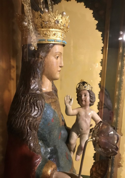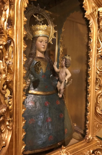 El caso es que, al salir a la luz, la imagen, aunque no mostraba graves deterioros, aparecía exhibiendo sobre sí la pobreza y las heridas de la guerra: no tenía corona, ni flor en la mano, ni la peana con los tres ángeles, ni adornos sobre el pobrísimo vestido. Y mostraba diversas rozaduras que lastimaban su rostro.