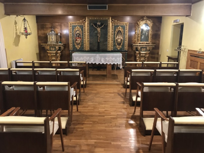 Justo a los pies de la Santina, en el corazón del Santuario, se encuentra la CASA DIOCESANA DE EJERCICIOS DE COVADONGA, gestionada por las Hijas de Santa María del Corazón de Jesús. En el mismo edificio de la histórica Colegiata de San Fernando. Allí en unas de sus capillas se encuentra la imagen original de la Santina. En el pasillo se conserva el cajón en que fue devuelta -tras los días de la persecución religiosa- desde Paría.