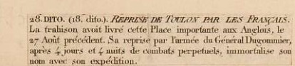 Se ordena la demolición de la ciudad; y el bronce [el cañón; (nota de VLR)], eco fiel de quien desgarra a los miembros de toulonnais, proclama en toda Francia su destrucción.