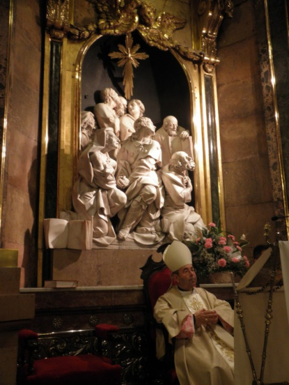 ¡Cuántas veces habremos visitado Zaragoza y su Pilar...! Recordábamos -durante las XI Jornadas Martiriales que se celebraron la semana pasada del 20 al 22-, por ejemplo, la consagración de toda España al Corazón Inmaculado de María los días 21 y 22 de 2005. O tantas peregrinaciones con la Congregación Mariana, con visita añadida a nuestro querido Don Carmelo [que fue obispo auxiliar de Toledo y que falleció hace año y medio]. Bajo estas líneas, presidiéndonos la Santa Misa el 4 de julio de 2013.
