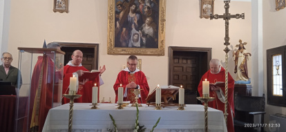 Santa Misa en honor a los Mártires y Caídos en Paracuellos de Jarama, por el padre Elvio Celestino Fontana, IVE [sobre estas líneas, presidiendo la Santa Misa] 7 de noviembre 2023