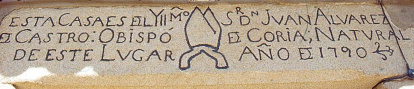 Sea perenne entre nosotros la memoria del esclarecido Obispo Ilmo. Sr. D. Juan Álvarez de Castro, quien después de consagrar su vida a las tareas apostólicas y sus bienes al servicio de los pobres y a la defensa de la Patria, murió asesinado por las tropas francesas en Hoyos a 29 de Agosto de 1809 a la una de la tarde, a los 85 años de edad y siete meses. El Cabildo Catedral, en el primer Centenario de la gloriosa Independencia española, dedica este humilde recuerdo al heroísmo y caridad de tan venerado Prelado.