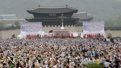 Así pues, la fe católica llegó a Corea al final del siglo XVIII con la lectura de varios libros católicos escritos en chino. Las más fuertes y dinámicas comunidades católicas fueron dirigidas casi enteramente por laicos hasta la llegada de la primera misión francesa en 1836. La comunidad católica sufrió las mayores persecuciones en los años de 1839, 1846 y 1866, principalmente por no participar en la tradicional veneración de los ancestros, lo cual era percibido como idolatría, pero que el Estado concebía como la piedra angular de la cultura. Los mártires coreanos fueron víctimas de la persecución religiosa contra la Iglesia Católica durante el siglo XIX en Corea. Al menos unos 8.000 creyentes fueron asesinados durante esta persecución, 103 de los cuales fueron canonizados en Seúl por san Juan Pablo II, en 1984.