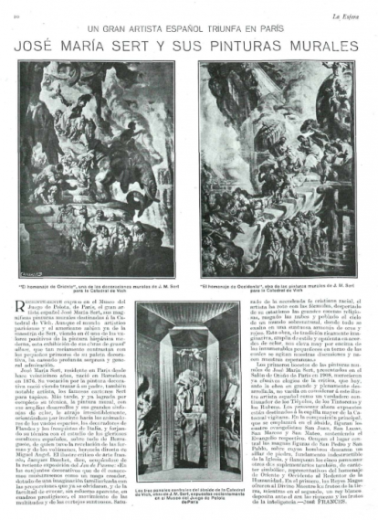 [Sobre estas líneas una página de La Esfera dedica a Sert y su obra. La foto inferior recoge los tres paneles que se colocarían en el ábside de la Catedral].