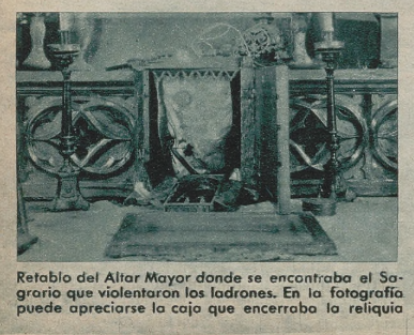 Sin embargo, en los días de la Segunda República la Cruz fue objeto de un robo sacrílego la noche del 14 de febrero de 1934. Los ladrones [que pasan por socialistas radicales y gentes de izquierda del mismo Ayuntamiento; la masonería; un motorista nazi caza-reliquias enviado por Himmler o Hitler; un vecino del pueblo que deseaba vengarse del guardián de la reliquia] hurtaron la sagrada reliquia y el relicario que la contenía, donación de la Casa de Alba en 1777, dejando la arqueta que guardaba a ambas y que donó en 1390 Lorenzo Suárez de Figueroa, Maestre de la Orden de Santiago.
