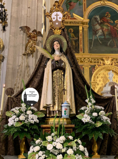 También de la Beata Mª Sagrario de san Luis Gonzaga [sobre estas líneas, imagen que se venera en la parroquia toledana de Lillo, donde nació la mártir carmelita] «la impresión más corriente entre las religiosas de su comunidad es que era alguien que tenía un gran espíritu de oración. Dicen: “tenía un espíritu muy carmelitano. Alma de mucha oración”. Una de ellas, recogiendo el sentir de las demás, explica: “en cuanto a su espíritu de oración, por de pronto quiero destacar que las religiosas antiguas afirmaban y afirman de ella que bastaba verla para sentir como una llamada a la vida interior, por los reflejos que de esta vida vivida por ella en ella se percibían” (…) Amaba tanto la vida y el ejercicio de la oración que llegó a decir alguna vez “que no la importaba el quedarse ciega porque de esta suerte podía estar todo el día dedicada a la oración».