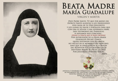 La Beata Guadalupe Ricart [sobre estas líneas] ejerció los cargos de Maestra de Novicias y Priora de su Comunidad. Durante estos períodos destacó por impulsar en cada una de las monjas un profundo espíritu de oración sobre todo (porque forma parte del carisma de la Orden) en torno al misterio de la Pasión del Señor y de la contemplación de los Dolores de la Virgen: «A la meditación de los Dolores de la Virgen -recuerdan los testigos- dedicaba el tiempo que seguía inmediatamente al descanso de la tarde y deseaba que las novicias lo aprendieran de memoria el Via Matris para poder hacerlo incluso cuando no había suficiente luz».