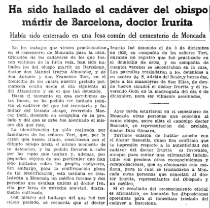 Desde Francia me escribe una estudiante de maestría en Historia en la Universidad Rennes 2. Está realizando una tesis sobre la trayectoria fotográfica de las fosas comunes de la Guerra Civil Española desde 1936 hasta la actualidad. Me pregunta concretamente por el cementerio en el que fueron fusilados el siervo de Dios Manuel Irurita Almandoz, el Obispo mártir de Barcelona y el ya beato Antoni Tort, entre otros. Ya publicamos: Montcada del Obispo - ReL