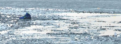 Una de las deportivas de los chicos quedó en la superficie del lago, como testigo de la tragedia... que no llegó a suceder.
