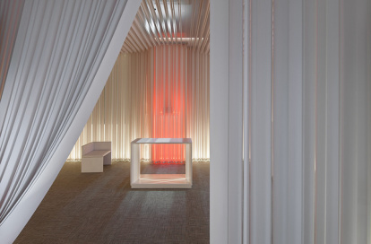 La capilla está inspirada en la Tienda del Éxodo (Ex 33, 7: “Moisés trasladó la Tienda y la plantó fuera del campamento, y la llamó Tienda del Encuentro. Si alguien quería consultar al Señor, salía del campamento e iba a la Tienda del Encuentro)”, por lo que esta “Capilla del Encuentro” quiere ser un lugar de silencio y oración para encontrarse con Dios. Busca la sencillez a través de un juego de luces y telas en el que destaca el Sagrario, presencia del Dios que desea ese Encuentro.