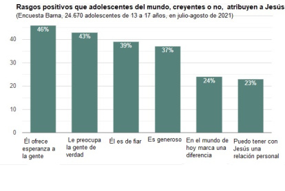 Un sondeo con casi 25.000 adolescentes de todo el mundo muestra que casi ninguno tiene mala imagen de Jesús, aunque sólo un 24% (cifra que coincide con la de adolescentes cristianos comprometidos) piensa que Él marque una diferencia en nuestra época.