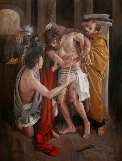 Pero de todo su trabajo destaca sobre todo la serie sobre la Pasión de Cristo, de corte hiperrealista y donde refleja el sufrimiento del Salvador en un entorno clásico henchido de sobrenaturalidad, y dejando al color (vivo y lleno de luz) el alivio del tenebrismo de la escena.