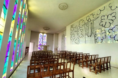 También Henri Matisse eligió para su capilla de Vence una planta en forma de "L" con el confesionario interpretado como nicho al que se accede pasando por una puerta de madera trabajada con motivos geométricos de estilo vagamente mudéjar, en un ambiente de tonos claros y espléndidas tonalidades naturales: es un lugar de esperanza y de resurrección.