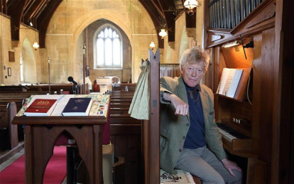 Toca el órgano -“uno manual, tres registros, sin pedales”- en la iglesia anglicana local de Todos los Santos. La ha dado a este lugar un nombre, a la vez irónico y desafiante: Scrutopia.