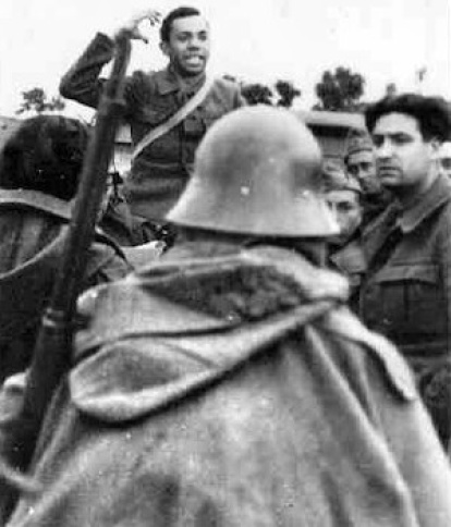 Arengando a las tropas: una de las más célebres fotografías de Miguel Hernández.