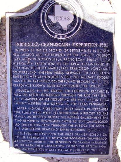 Placa en Texas que evoca la expedición Rodríguez-Chamuscado en 1581.