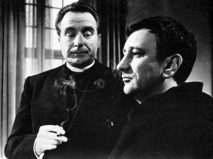 En primer término, Horst Bollmann, quien interpretó al padre Malaquías en la versión cinematográfica de El milagro del padre Malaquías, dirigida en Alemania en 1961 por Bernhard Wicki.