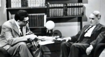 Bruce Marshall (a la derecha), entrevistado por Luigi Silori para la RAI en 1959. Foto: Wikimedia.
