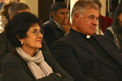 Entre los asistentes al acto estaban la presidenta de la Fundación Tierra Santa, Carmen Pérez Villota, y el director del Proyecto Magdala, el padre Juan Solana, LC.