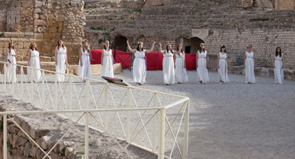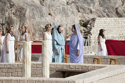Noticia en Tac12TV (en catalán) sobre la interpretación a la luz del día de la Pasión en el anfiteatro