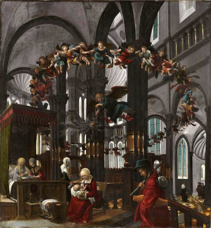Como una reacción ante estas consideraciones, consideradas "demasiado prosaicas", Albrecht Altdorfer (1480-1538) sitúa el momento en una iglesia "inmensa y luminosa, como símbolo de María".