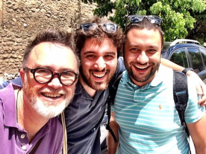 Para Giovanni y para mí fue la ocasión de volvernos a ver. Nos conocimos el verano pasado en San Benedetto del Tronto, y después pasamos un par de horas en Nursia. En esta foto de hace un año estoy con Giovanni y su querido amigo Stefano Schileo: