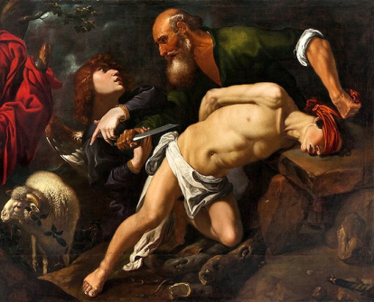 En El sacrificio de Isaac, de Pedro Orrente (1580-1645) se incluyen dos prefiguraciones del sacrificio de Cristo: la del propio Isaac y la del cordero. Museo de Bellas Artes de Bilbao.