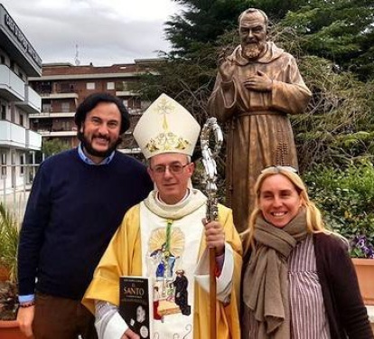 Franco Moscone es el obispo de San Giovanni Rotondo, donde el estreno de El Misterio del Padre Pío suscitó un gran entusiasmo. Monseñor Moscone, que aparece en la foto junto al director y la productora ejecutiva de la película, bendijo los frutos del film.