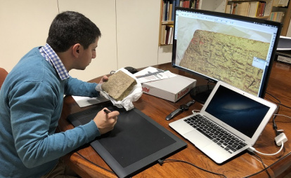 El doctor Justel, trabajando con el documento del siglo VI a.C. que será presentado en las jornadas