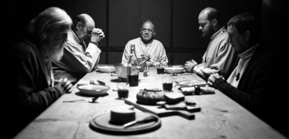 Los monjes se asustan con la policía. "Era forastero y me acogisteis", citan. Tienen una hospedería. Pero "tal vez nos excedimos", dudan. "¿Tenemos que renunciar a nuestro silencio y soledad? Dios sólo tiene nuestras manos, la fe sin obras está muerta. Hay que recibir a cada extranjero como a Cristo". No está muy claro a qué congregación pertenecen y cuál es, según su Regla, su carisma y obligación exacta para con los huéspedes.