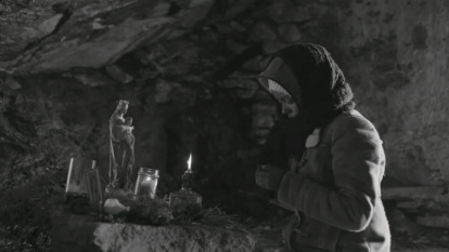 Película en blanco y negro. Suenan las campanas en un monasterio suizo que parece frágil en la nieve, blanco de nieve arriba en el cielo y blanco de nieve, abajo en la tierra. El gris del monasterio es una franja intermedia, el mundo de los hombres. Sopla el viento, que será un let-motiv de la película. Juan 3,8: "El viento sopla de donde quiere, y oyes su sonido; mas ni sabes de dónde viene, ni a dónde va; así es todo aquel que es nacido del Espíritu". El Espíritu Santo se hace visible en la película en el viento y el fuego. No en el agua, que aquí es signo de destrucción.