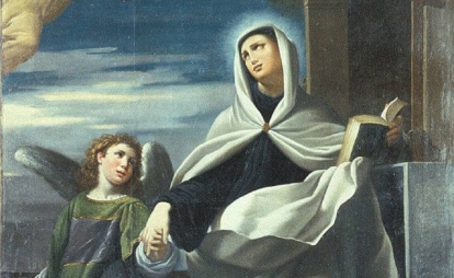 - Santa Francesca Romana, siempre representada con el ángel que la acompañaba y guiaba, y a quien podía ver.